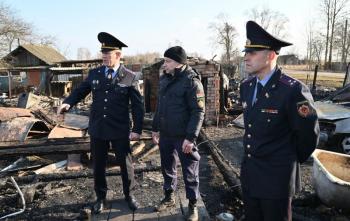 Специалисты управления ГКСЭ по Гомельской области работают на месте пожара в деревне Углы Рогачёвского района